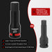 - The socket features permanent and high-visibility laser-etched size markings with red color-code ring for quick and accurate size selection in low-light conditions or high-speed workflows.