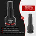 - The socket features permanent and high-visibility laser-etched size markings with red color-code ring for quick and accurate size selection in low-light conditions or high-speed workflows.